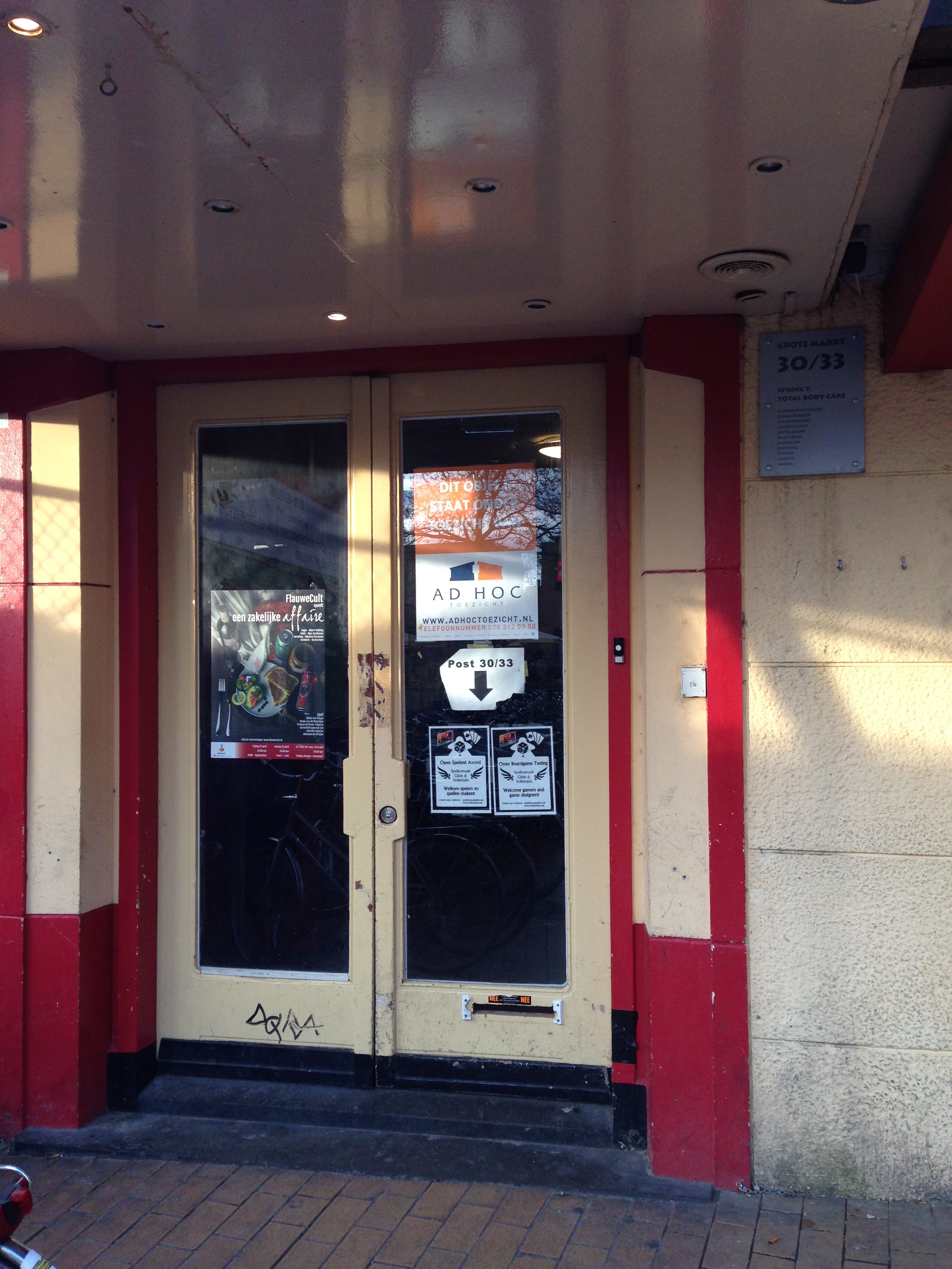 De ingang van onze testlocatie is wat lastig te vinden. De nummering is onlogisch en er staan veelal fietsen voor de deur en het pand geparkeerd. Dit is de deur waar je naar binnen moet: