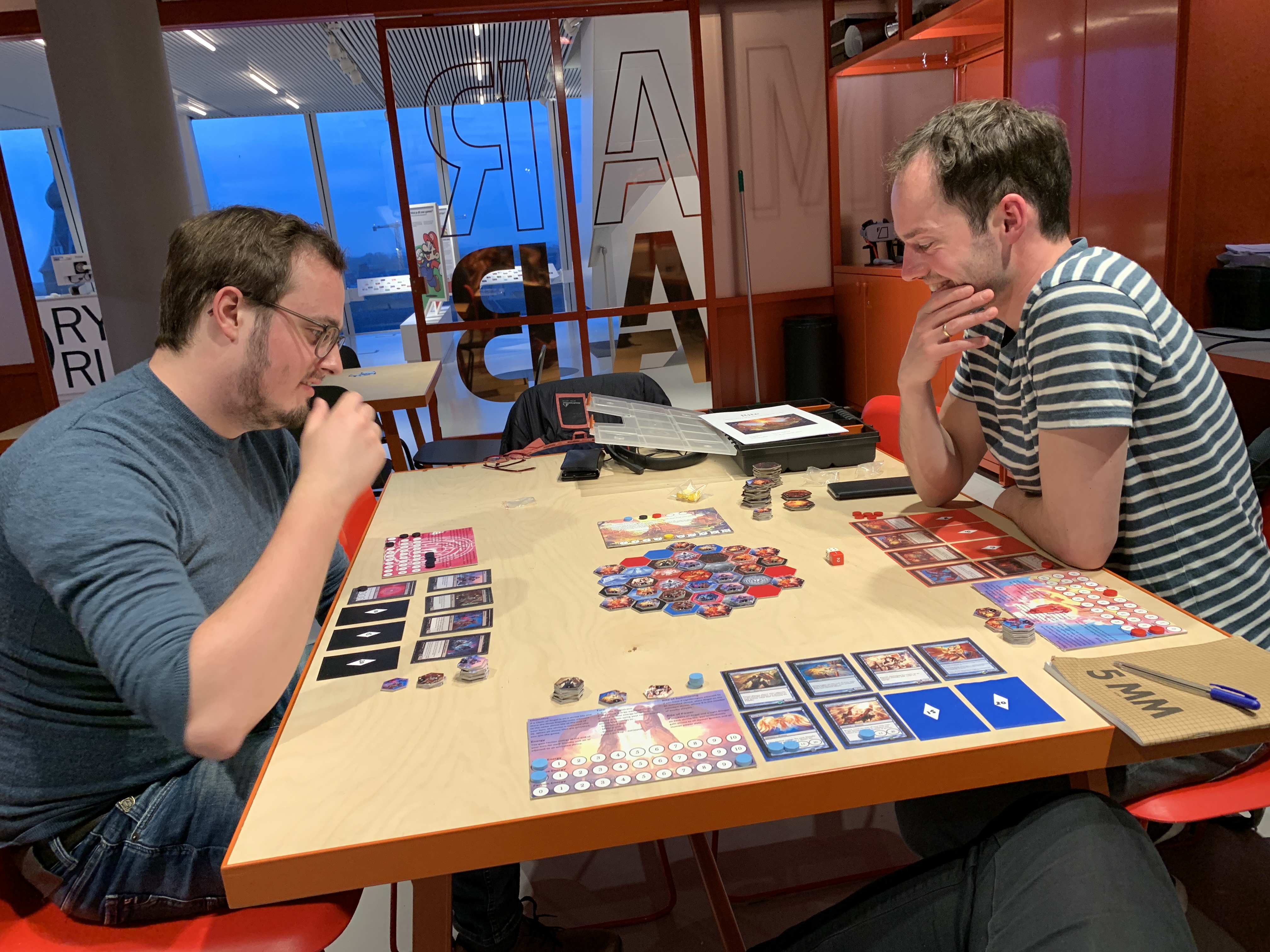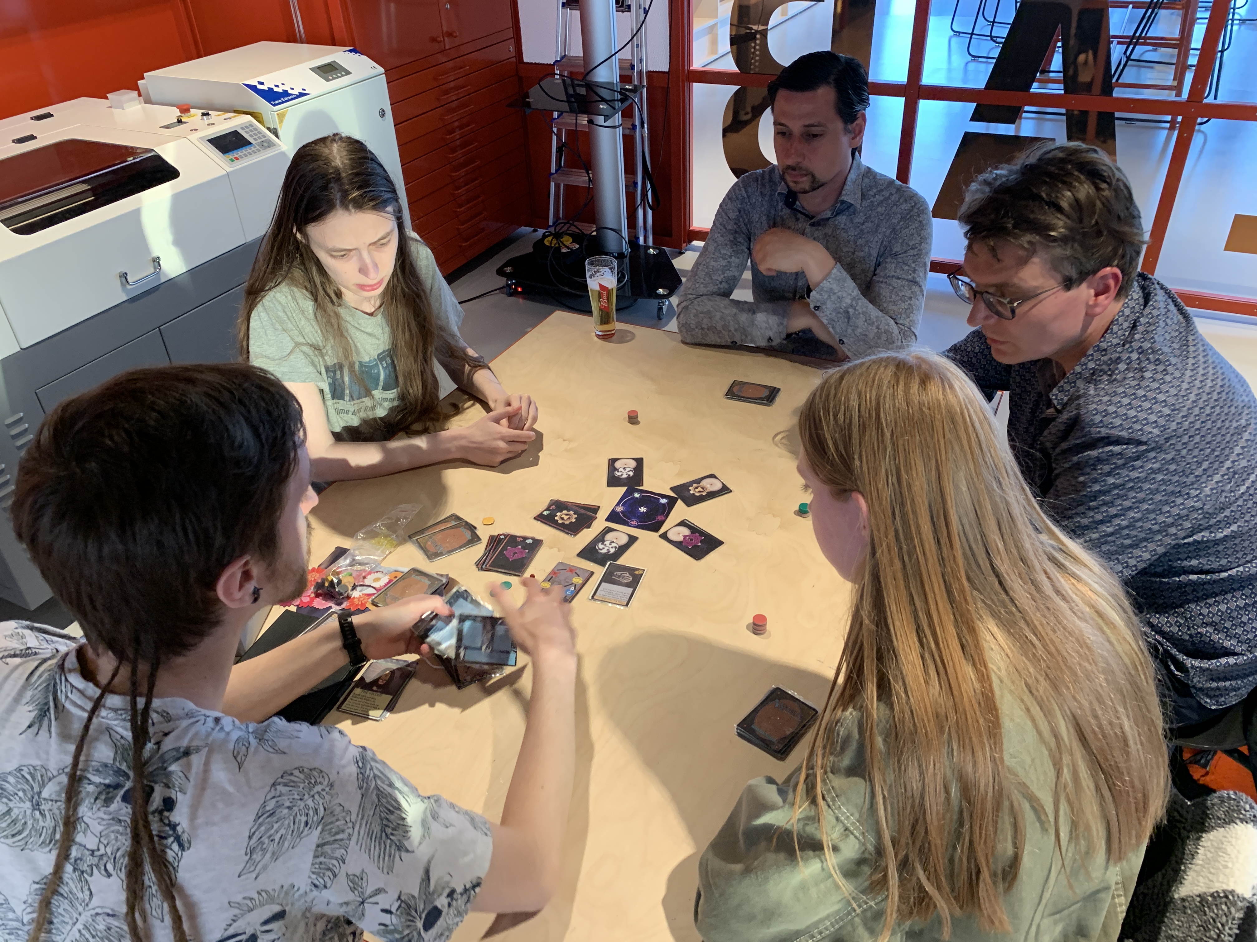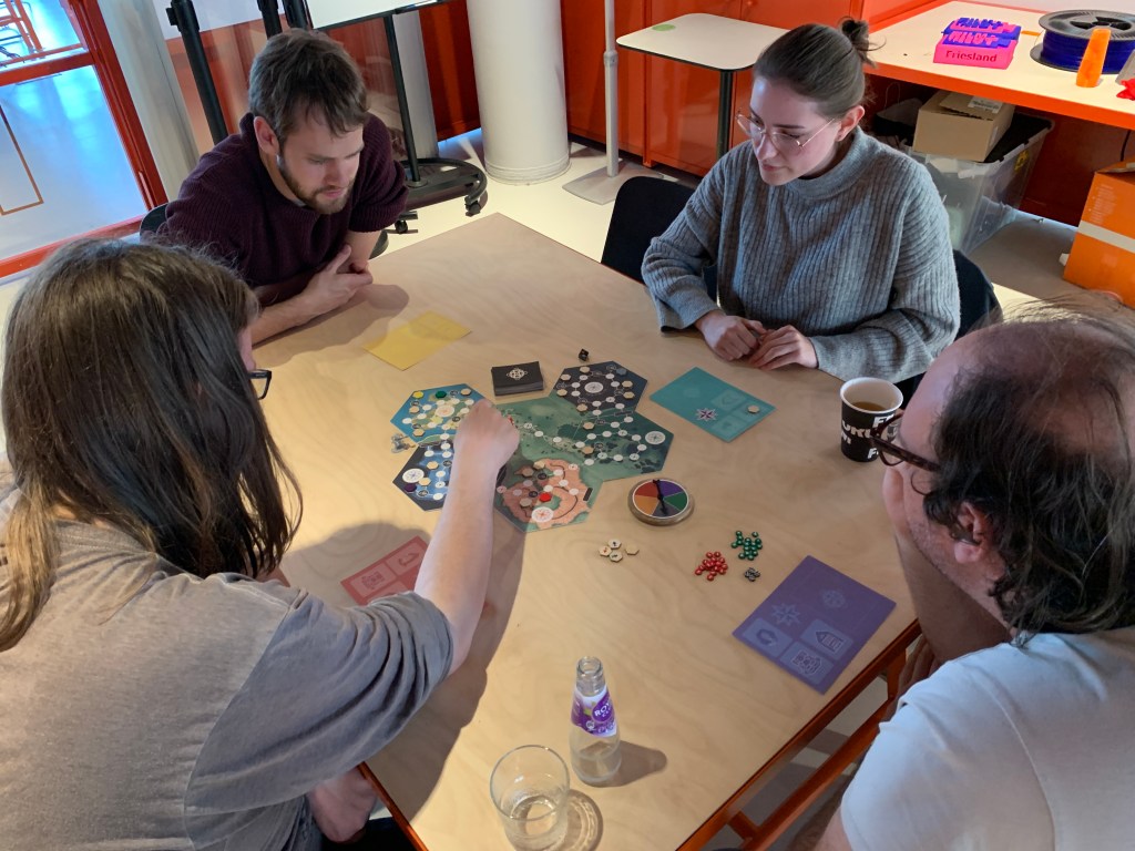 We were able to test a variety of games, from an early version of a ‘Push your luck with dinos’ game (always a good idea as we know from a well-known franchise) to a 3D printed puzzle cube that already seems ready for production. The gaming tables were crowded, there was feedback from designers and from actual players and the atmosphere was again fantastic. Let’s hope that Speelwarden will become an annual event!
